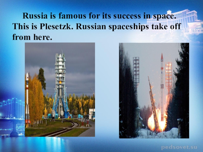 Слайд 9 Russia is famous for its success in space. This is Plesetzk.
