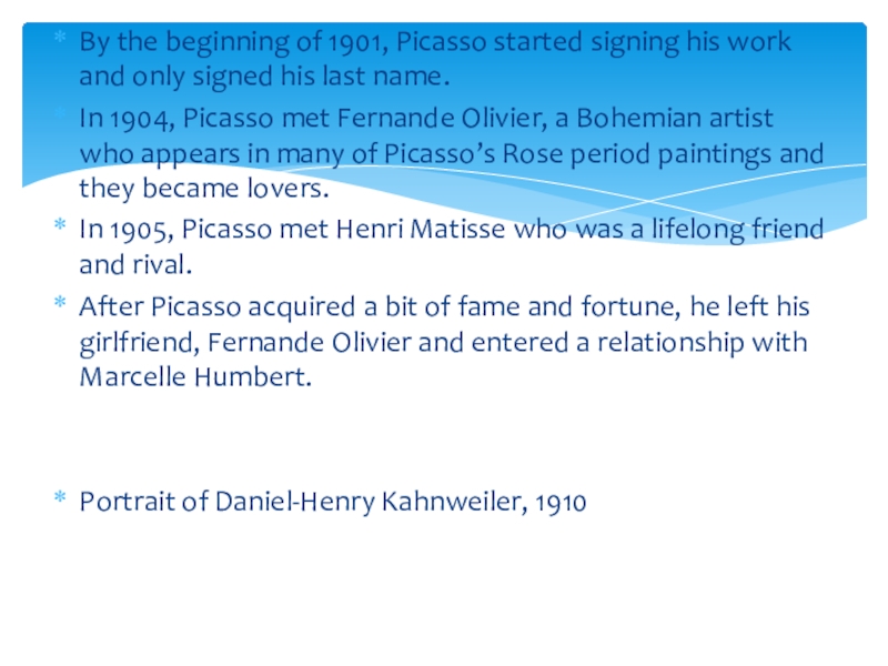 Слайд 6By the beginning of 1901, Picasso started signing his work and
