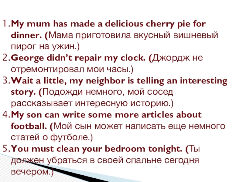 Слайд 4My mum has made a delicious cherry pie for dinner. (Мама