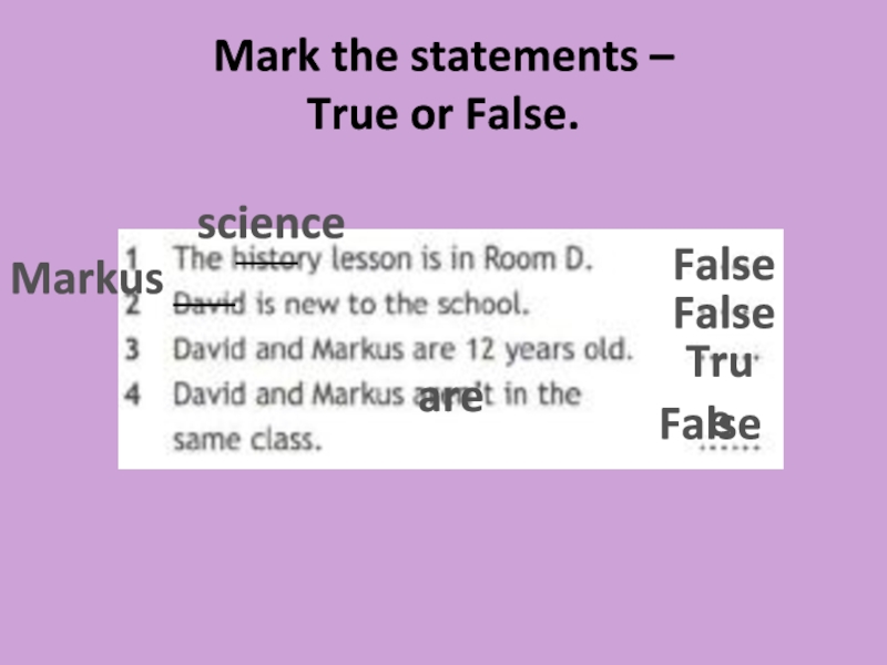 Mark the statements – True or False.FalseFalseFalseTruescienceMarkusare