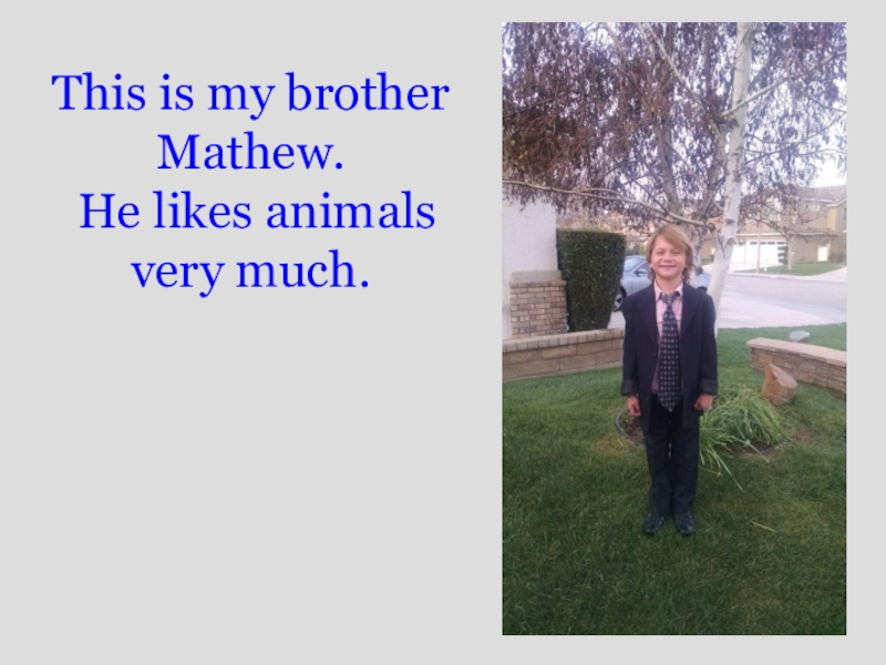 Слайд 12This is my brother Mathew. He likes animals very much.