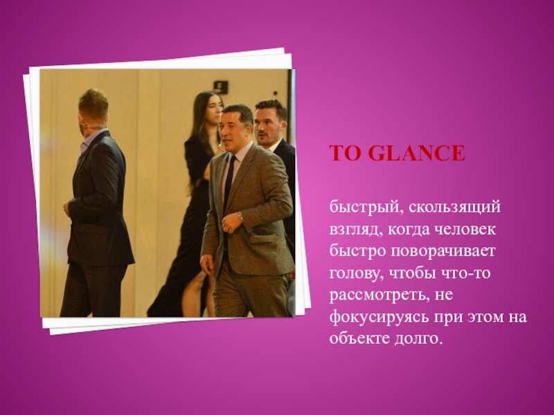 быстрый, скользящий взгляд, когда человек быстро поворачивает голову, чтобы что-то рассмотреть, не фокусируясь при этом на объекте долго.