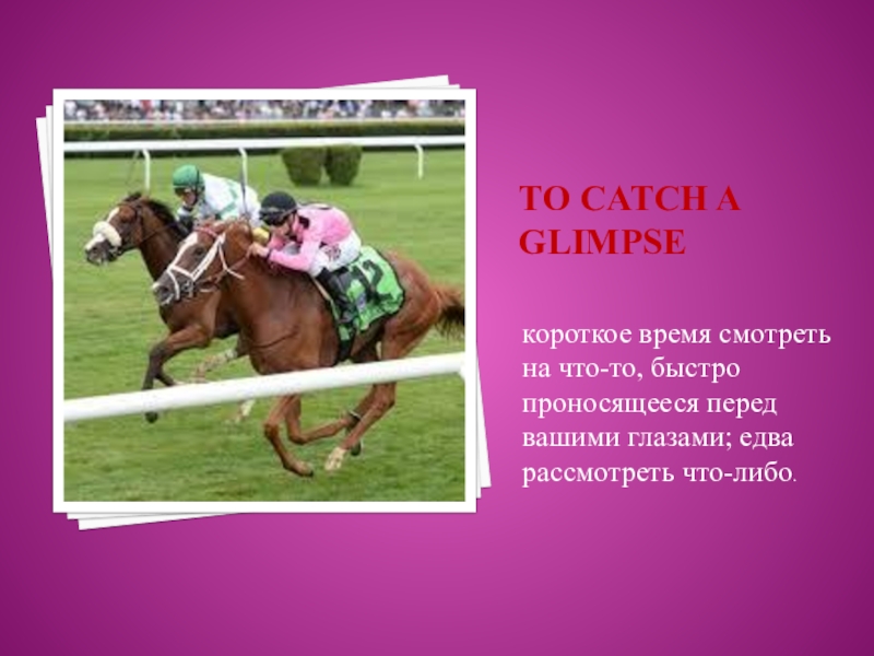 короткое время смотреть на что-то, быстро проносящееся перед вашими глазами; едва рассмотреть что-либо.