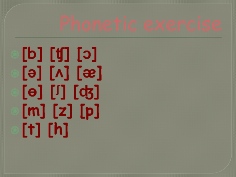 Phonetic exercise[b] [ʧ] [ɔ] [ә] [ᴧ] [ᴂ] [ө] [ᶴ] [ʤ][m] [z] [p][t] [h]