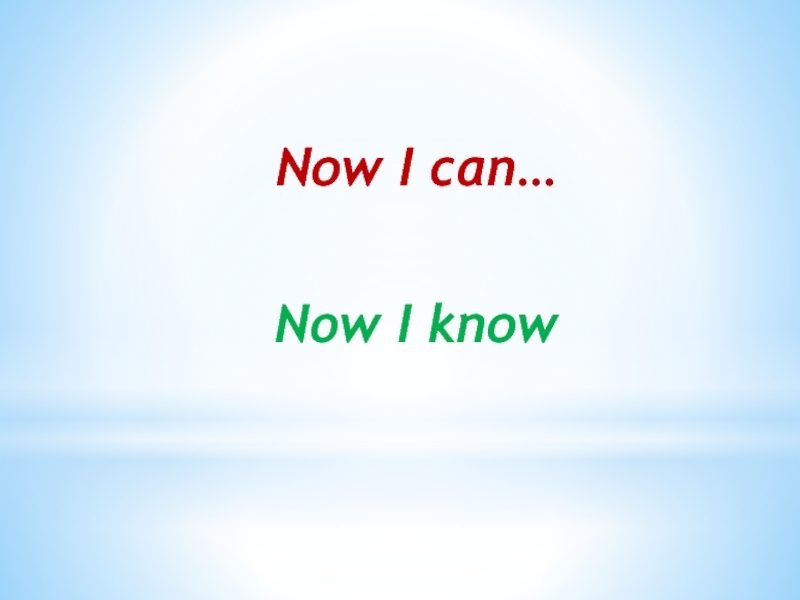 Now I can…Now I know