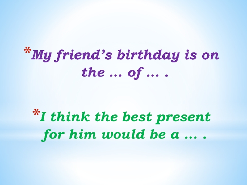 My friend’s birthday is on the … of … .I think the best present for him would