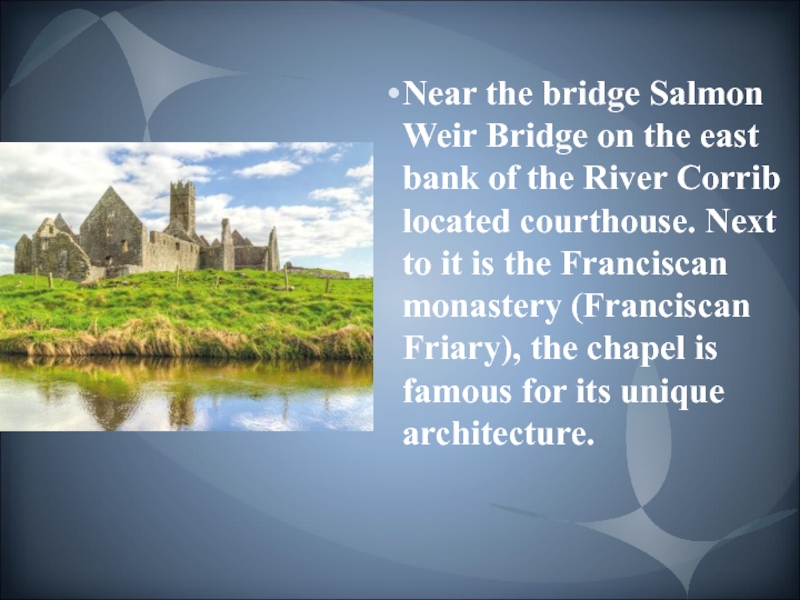 the River Corrib located courthouse. Next to it is the Franciscan monastery (Franciscan Friary), the chapel is famous for its unique architecture.
