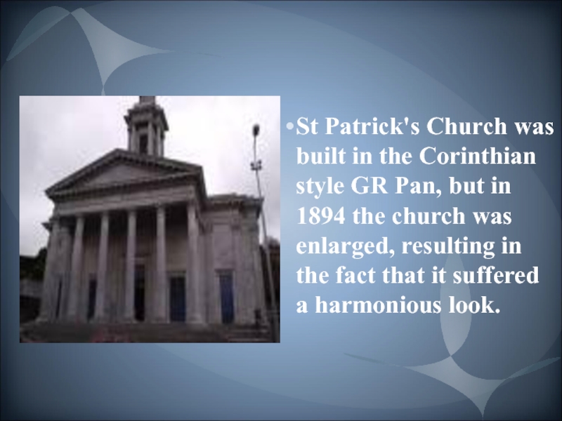 St Patrick's Church was built in the Corinthian style GR Pan,
