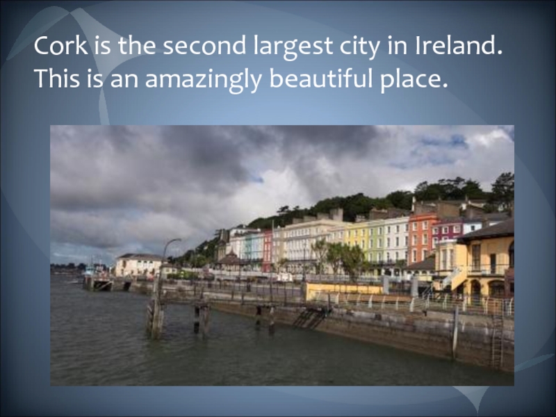 Слайд 2Cork is the second largest city in Ireland. This is an