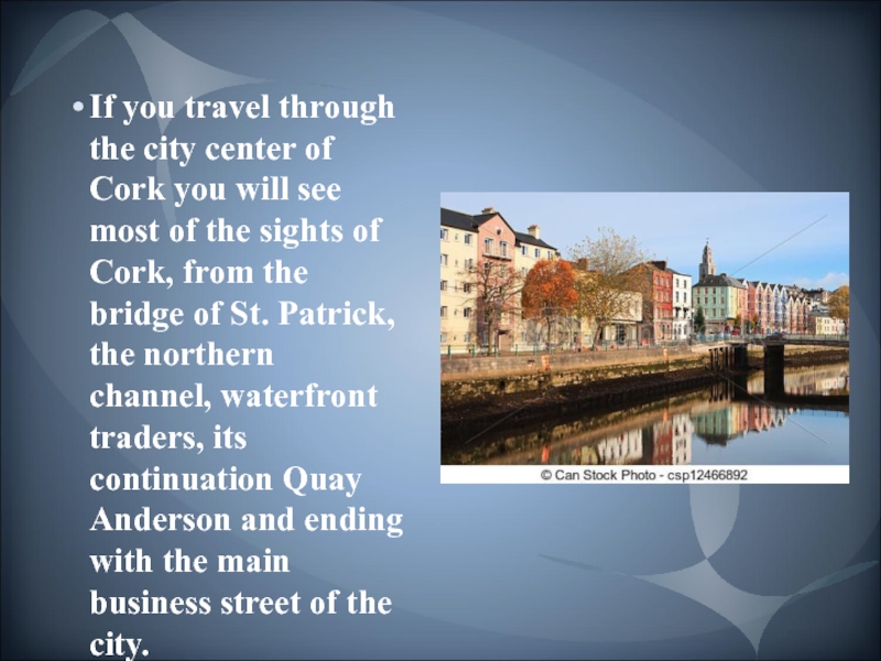 Слайд 3If you travel through the city center of Cork you will