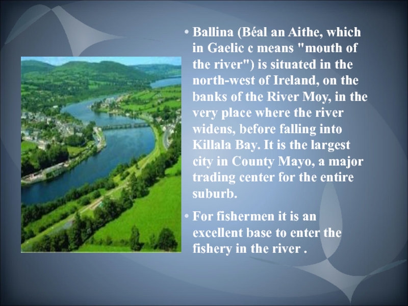 Слайд 4Ballina (Béal an Aithe, which in Gaelic c means "mouth of