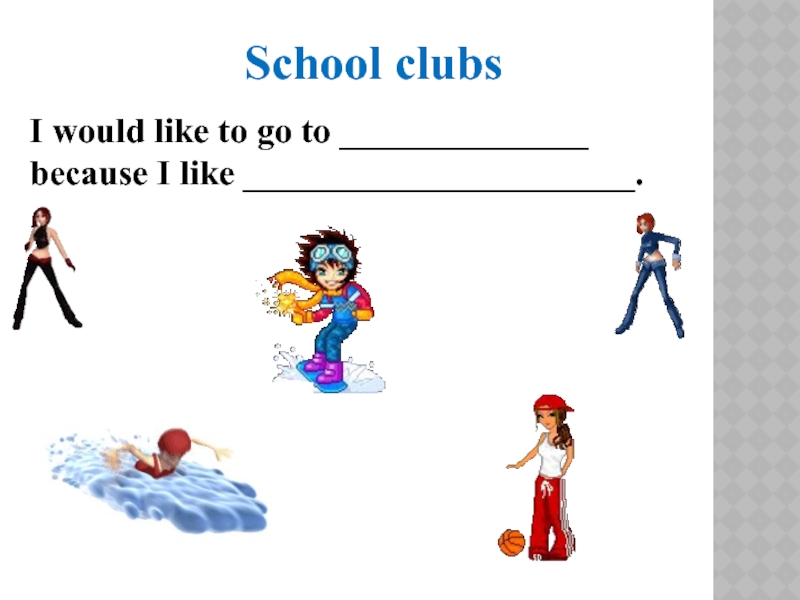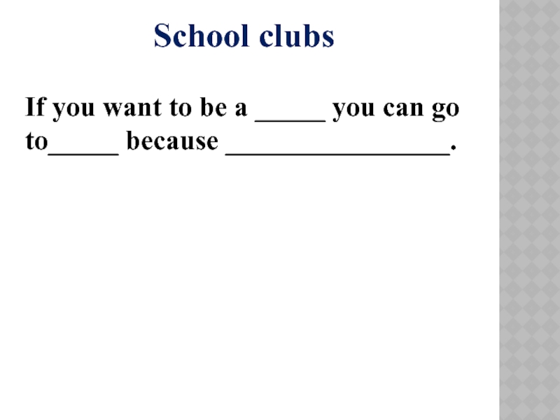 If you want to be a _____ you can go to_____ because ________________.School clubs
