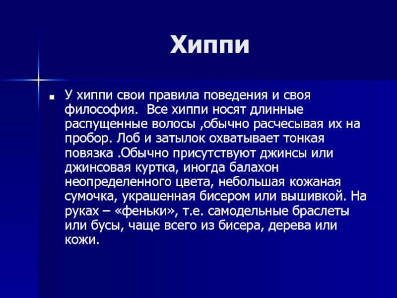 У хиппи свои правила поведения и своя философия. Все хиппи носят