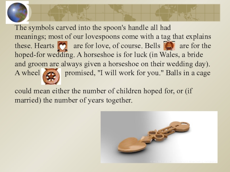 Слайд 4The symbols carved into the spoon's handle all had meanings; most of