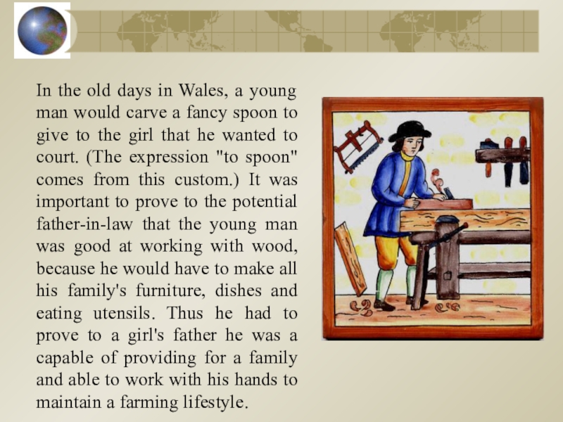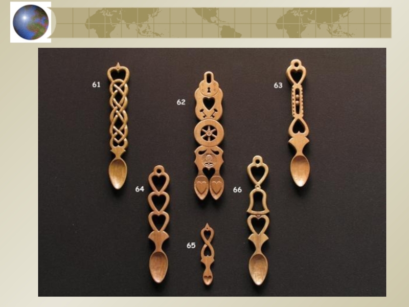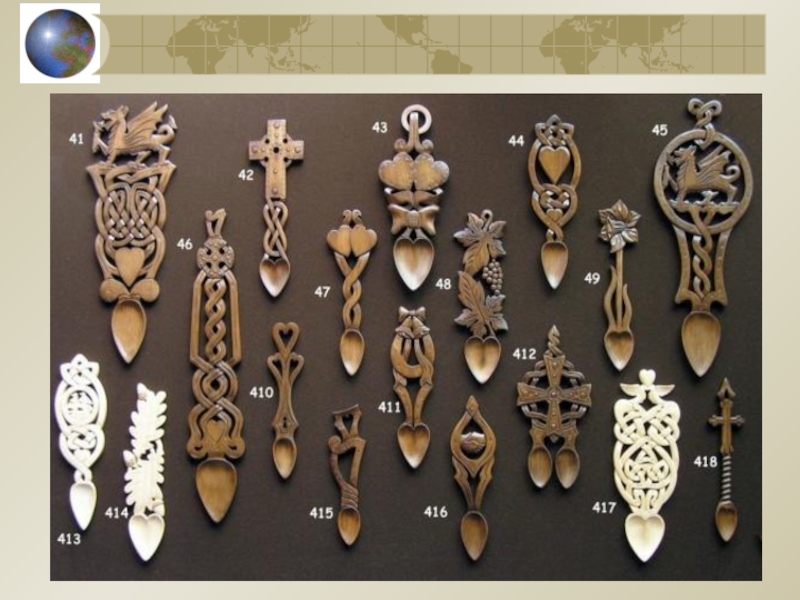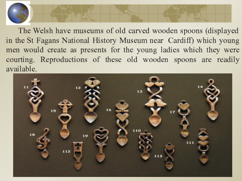 Слайд 8The Welsh have museums of old carved wooden spoons (displayed in