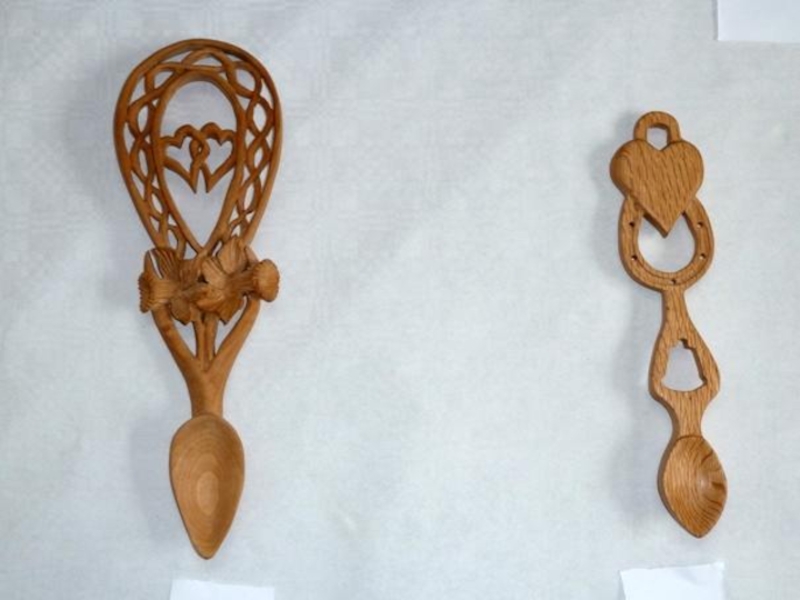 the St Fagans National History Museum near  Cardiff) which young men would create as presents for the young ladies which they were courting. Reproductions of these old wooden spoons are readily available.