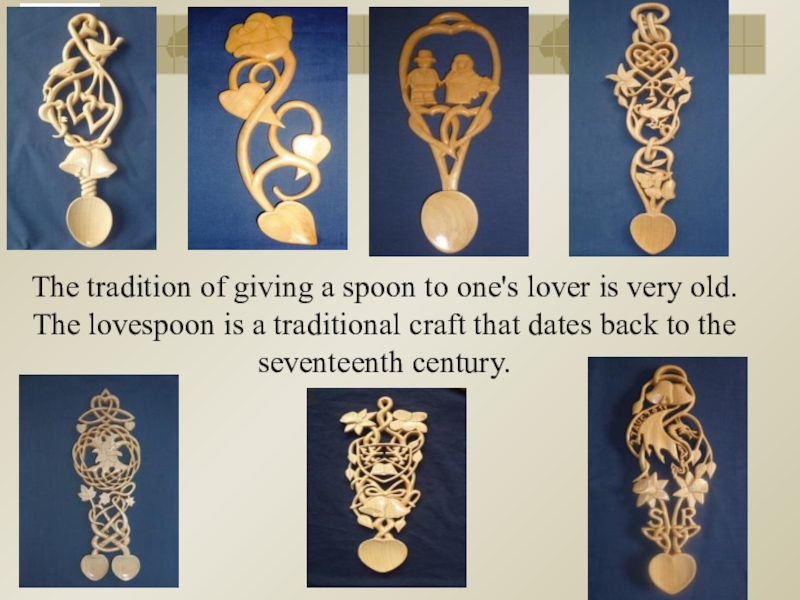Слайд 2The tradition of giving a spoon to one's lover is very