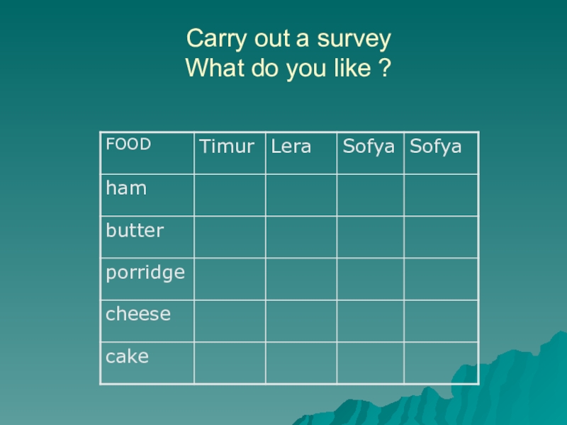 Слайд 12Carry out a survey What do you like ?