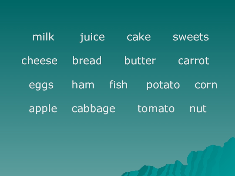 Слайд 11У мамы Билли много вкусного на завтрак. Послушай и назови эти продукты.
