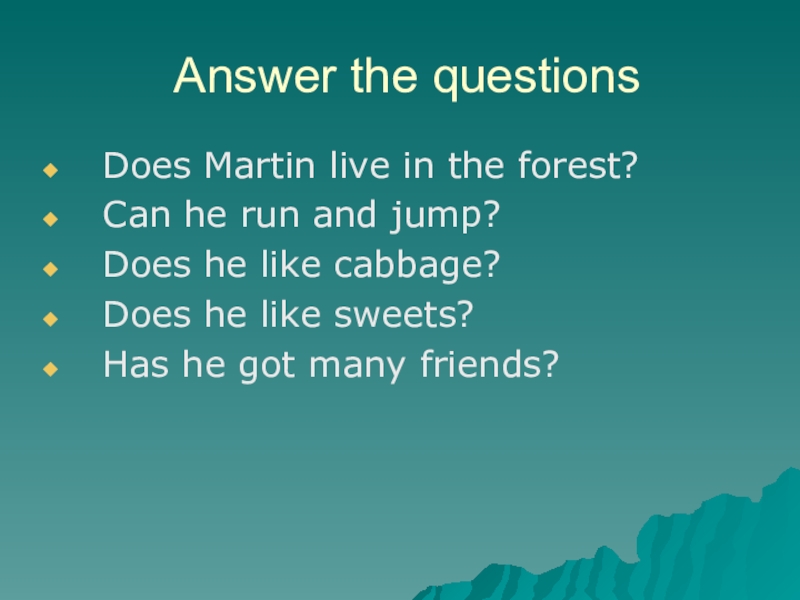 Answer the questions Does Martin live in the forest? Can he run and jump? Does he like