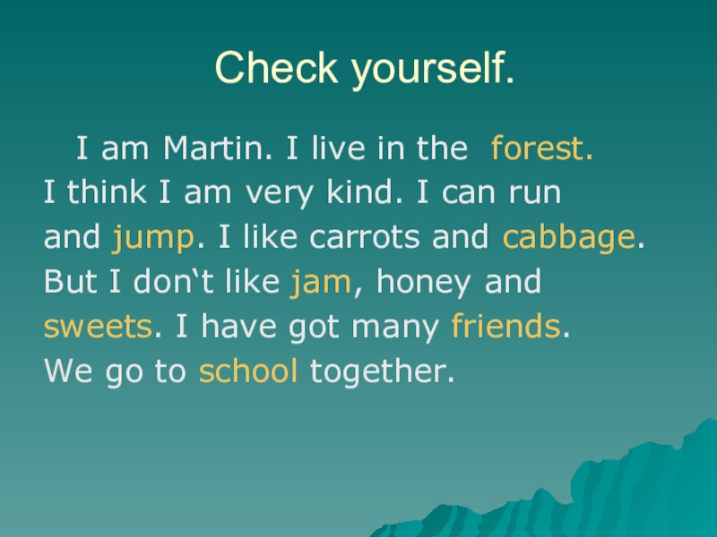 Check yourself.  I am Martin. I live in the forest.I think I am very kind. I