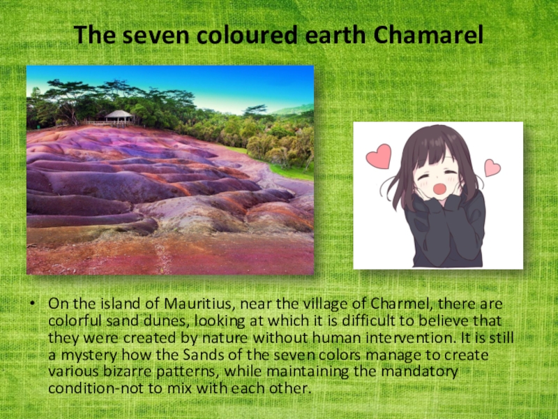 The seven coloured earth Chamarel  On the island of Mauritius, near the village of Charmel, there