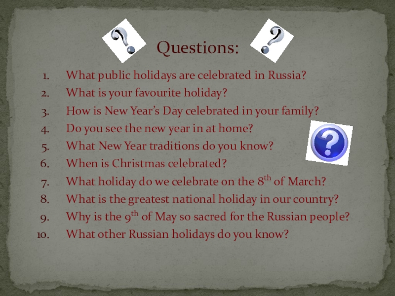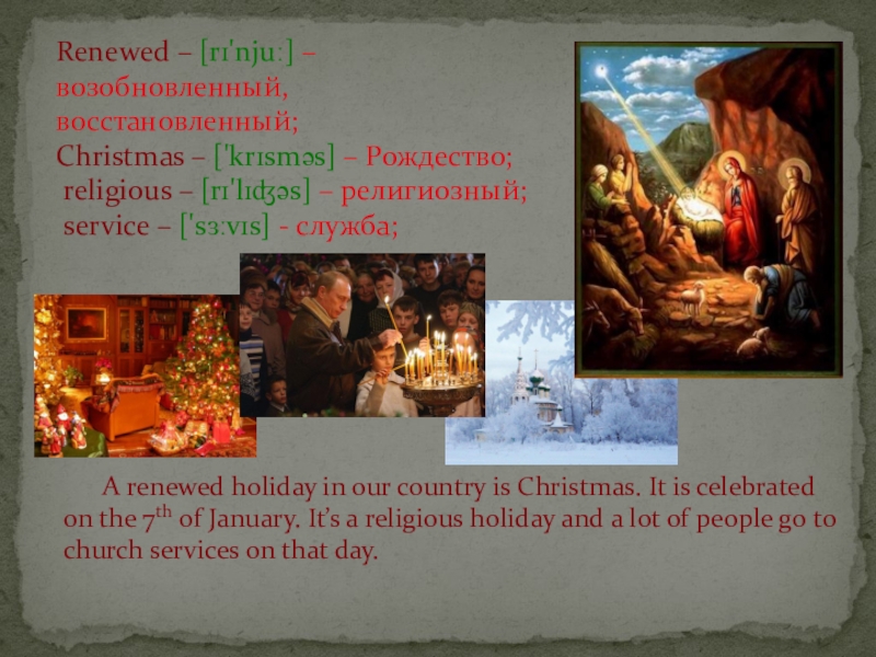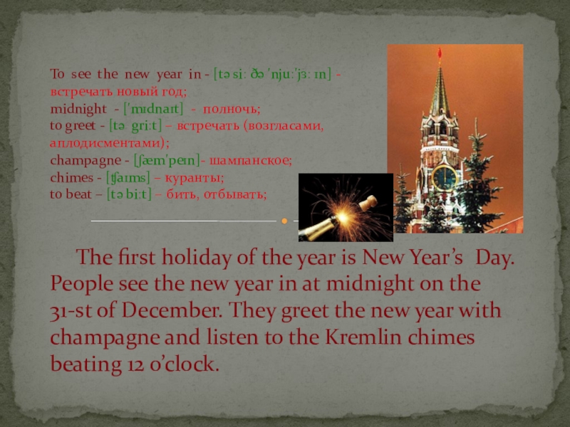 New Year's Day - ['njuː'jɜːs deɪ] – День Нового года;