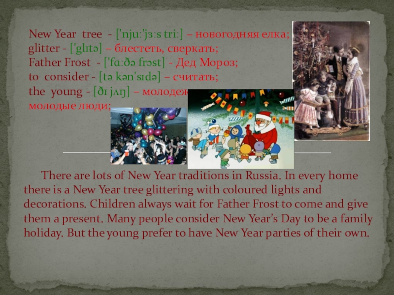 New Year tree - ['njuː'jɜːs triː] – новогодняя елка;