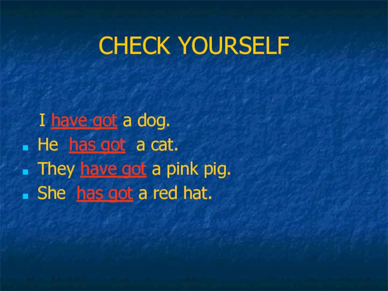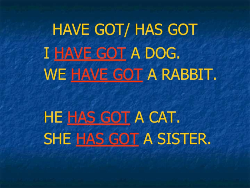 HAVE GOT/ HAS GOT   I HAVE GOT A DOG.   WE HAVE GOT A