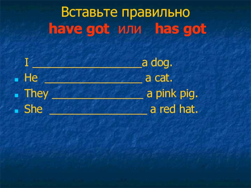 Вставьте правильно   have got или  has got   I __________________a dog.