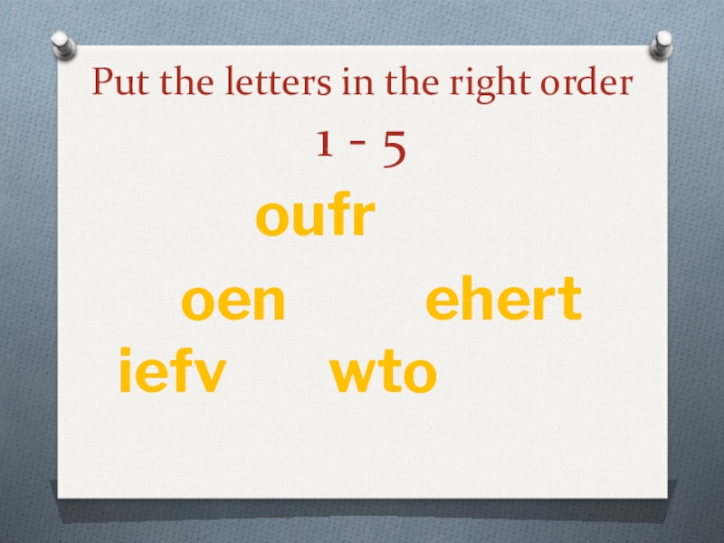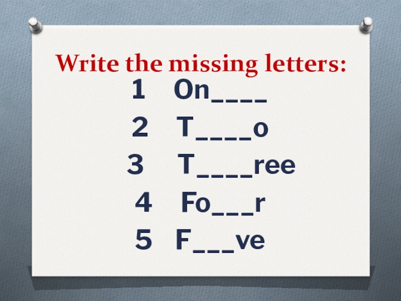 Write the missing letters:1 On____ 2 T____o 3 T____ree4 Fo___r5 F___ve