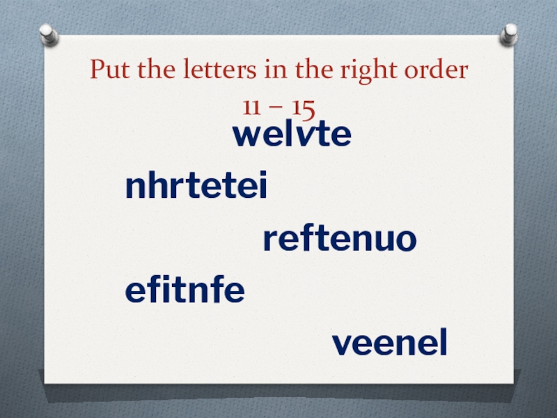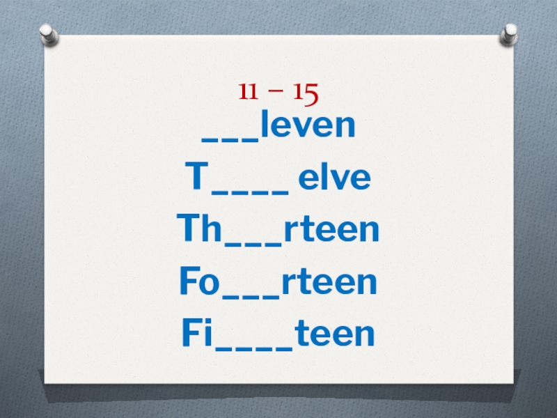 11 – 15 ___levenT____ elveTh___rteenFo___rteenFi____teen