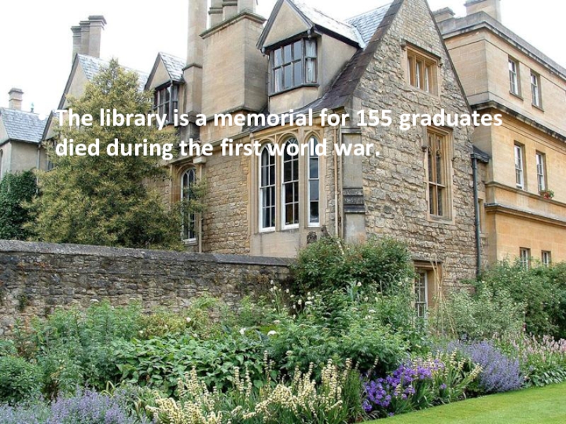 The library is a memorial for 155 graduates died during the first world war.
