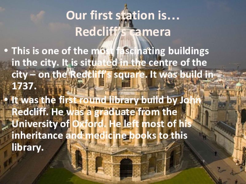 Our first station is… Redcliff’s cameraThis is one of the most fascinating buildings in the city. It