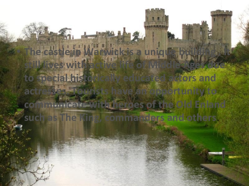 Слайд 8The castle in Warwick is a unique building . It still