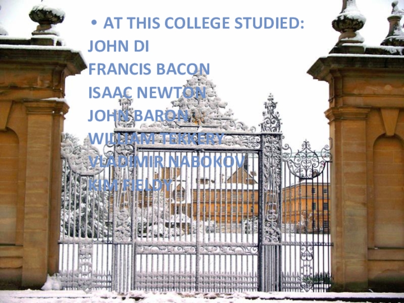 At this college studied:John DiFrancis BaconIsaac NewtonJohn BaronWilliam TekkeryVladimir NabokovKim Fieldy