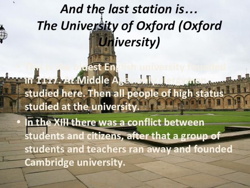 Слайд 22And the last station is… The University of Oxford (Oxford University)