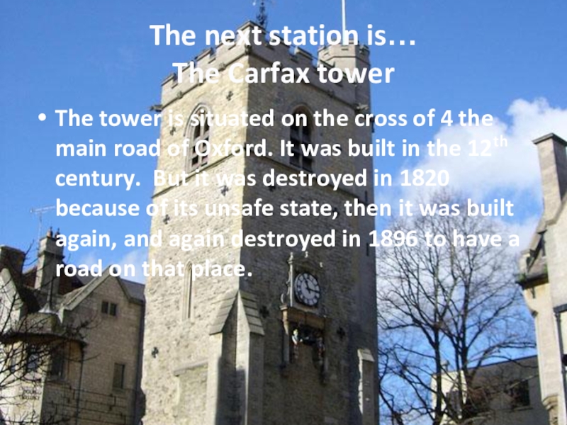 Слайд 5The next station is… The Carfax tower
