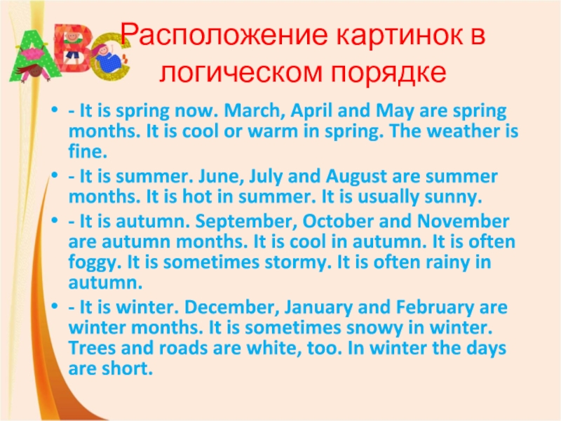 Слайд 10Расположение картинок в логическом порядке