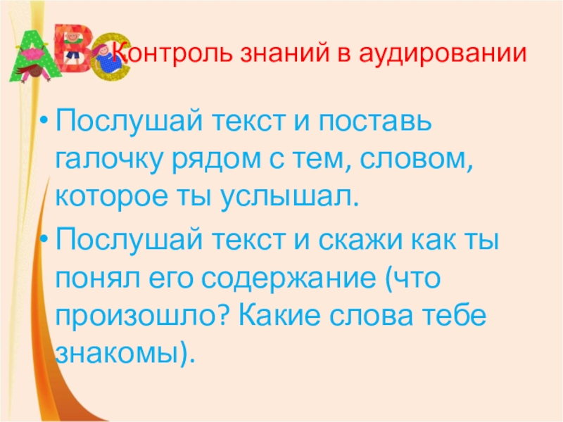 Слайд 16Контроль знаний в аудировании