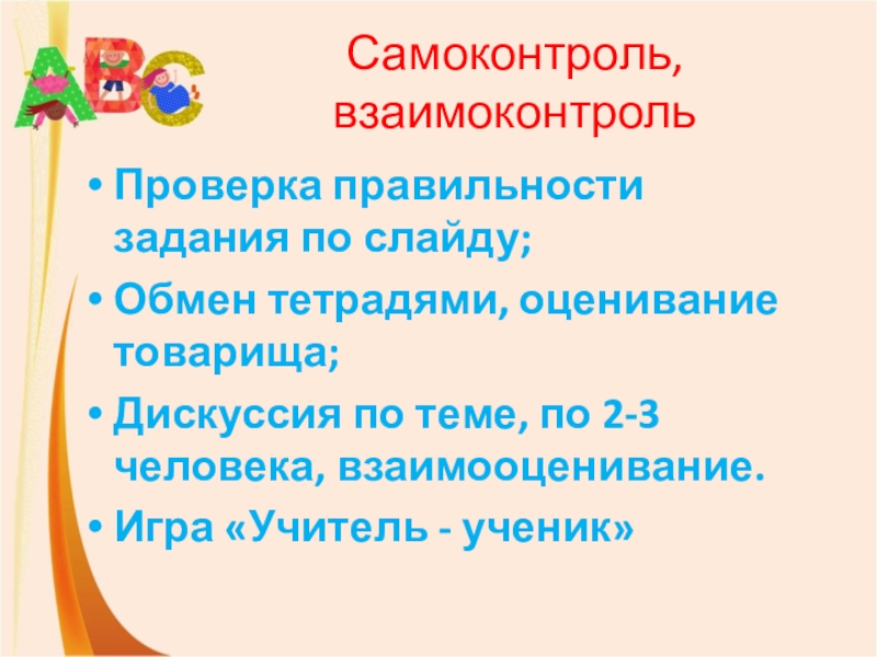 Слайд 24Самоконтроль, взаимоконтроль