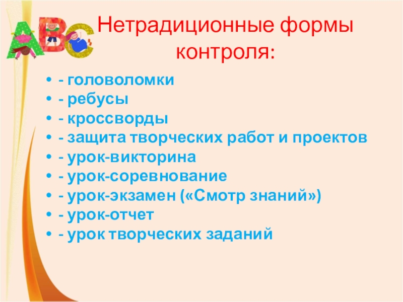 Слайд 8Нетрадиционные формы контроля: