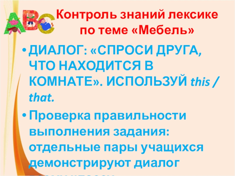 Слайд 13Контроль знаний лексике по теме «Мебель»