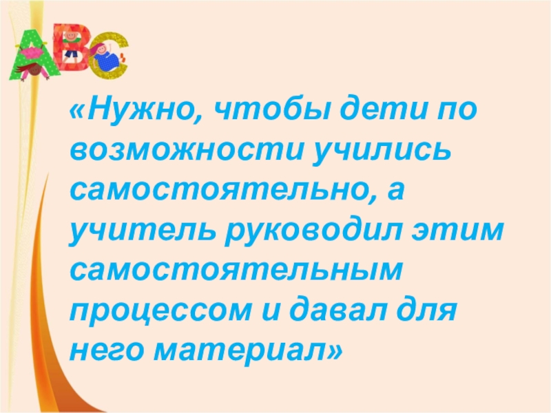 Слайд 3«Нужно, чтобы дети по возможности учились самостоятельно, а учитель руководил этим