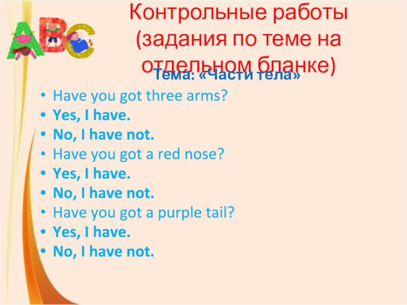 Слайд 19Контрольные работы (задания по теме на отдельном бланке)