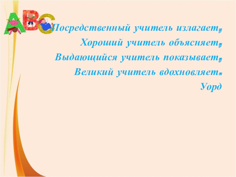 Слайд 2Посредственный учитель излагает,