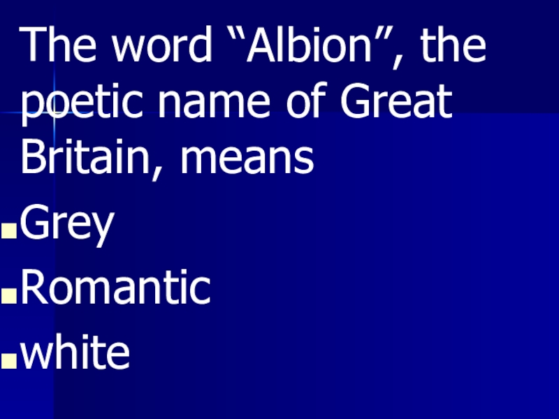 Слайд 8The word “Albion”, the poetic name of Great Britain, means