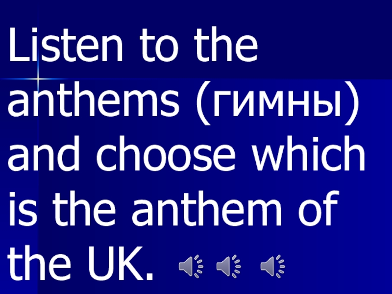 Слайд 31Listen to the anthems (гимны) and choose which is the anthem