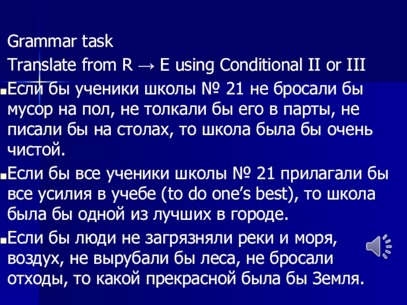 Если бы все ученики школы № 21 прилагали бы все усилия в учебе (to do one’s best), то школа была бы одной из лучших в городе.