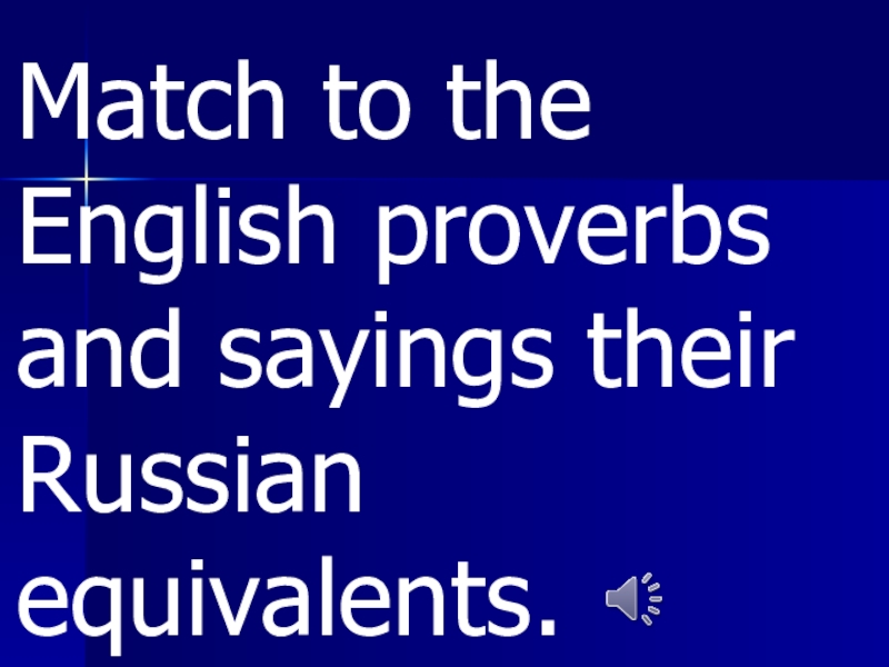 Слайд 29Match to the English proverbs and sayings their Russian equivalents.